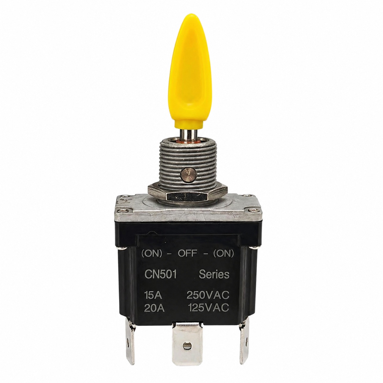 This (ON)-OFF-(ON) SPDT toggle switch is designed as a direct aftermarket replacement for JLG aerial work platform controls.
